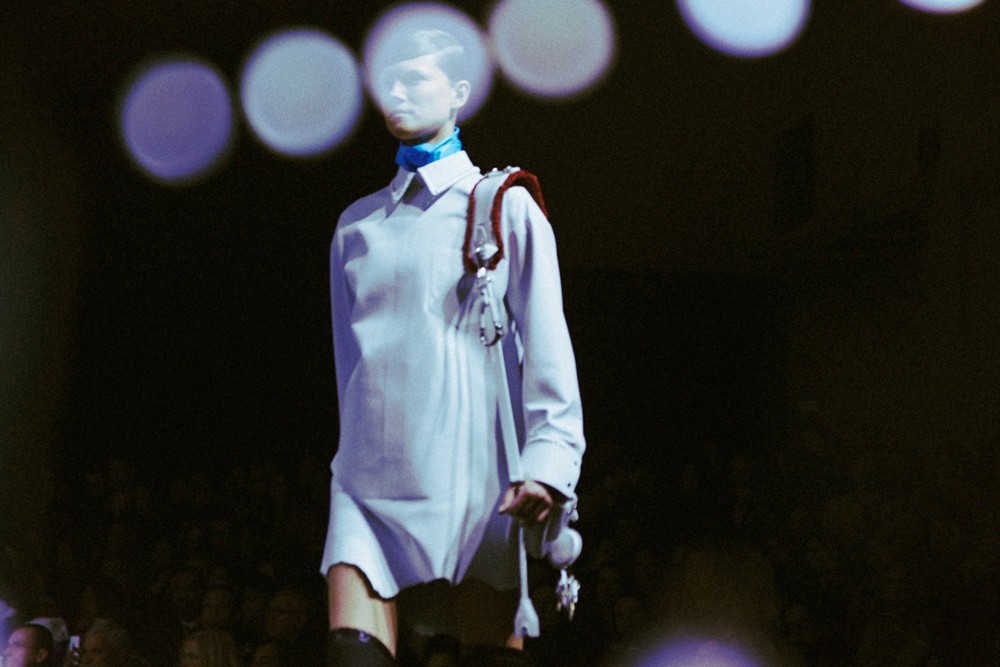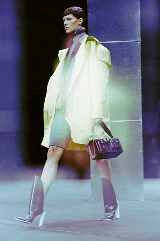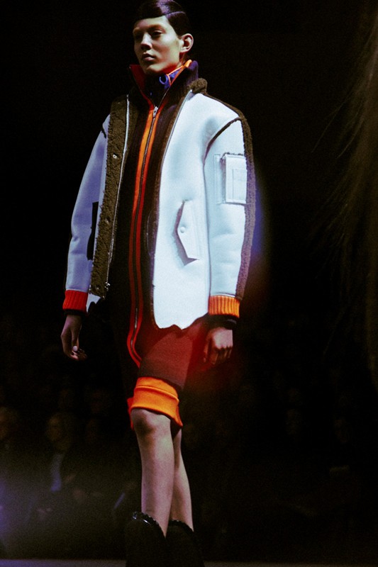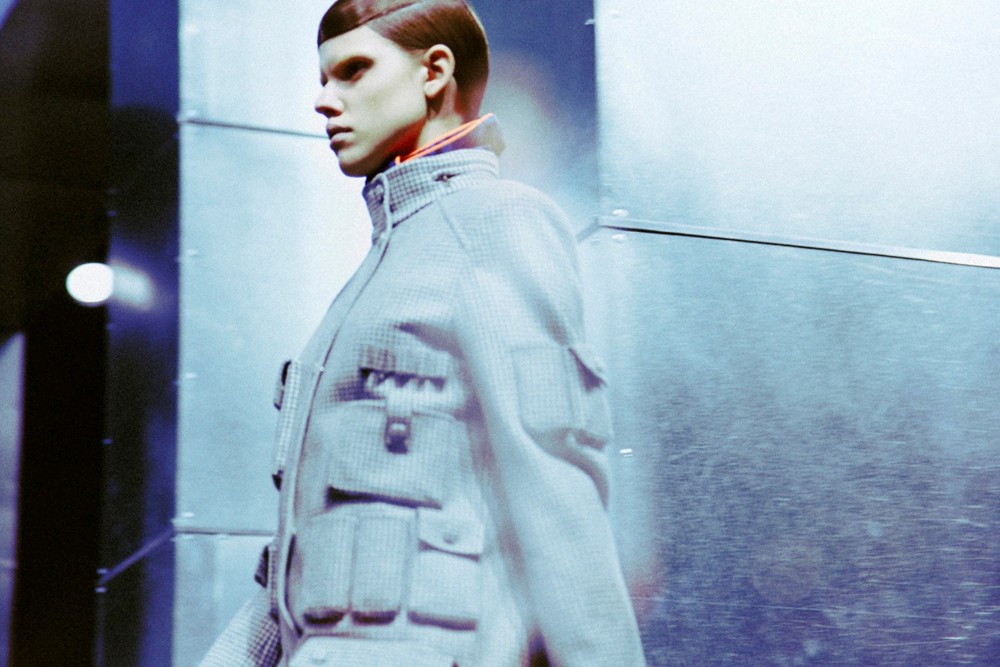 Then come the flashes of neon. Bright, almost industrial pops of color cut through the darker palette, illuminating seams, panels, and details. These moments feel purposeful, like safety markers on workwear, reinforcing the utilitarian theme while injecting energy into the collection. The contrast sharpens the visual impact and keeps the looks from feeling heavy or monotone.