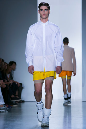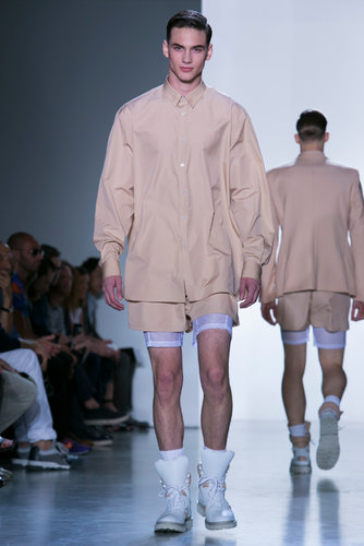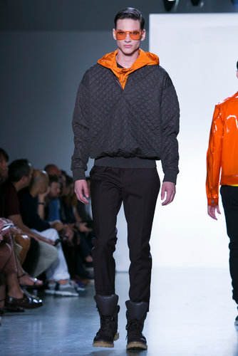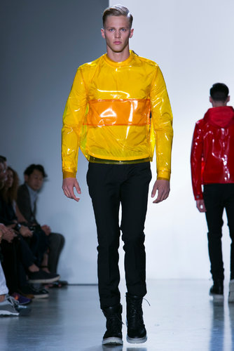 This Calvin Klein collection is a story with a timeline unlike most collections this season. I assume the nude represents birth, the bright industrial plastic candy like coats represent blooming and/or our highest peak and the black is symbolic of death. It’s a lifespan, It’s interesting seeing them all dip into each-other as the timeline slowly progresses. I personally love the full nude and dark outfits because they are the extreme of both sides.