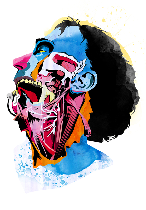 Each portrait leans heavily into what makes a face instantly recognizable. A sharp brow. An exaggerated lip. A gaze pushed just past realism. Hidalgo isolates these iconic features and amplifies them, allowing them to dominate the composition. The result feels almost caricatured, but never careless. Every distortion is controlled, every emphasis deliberate.