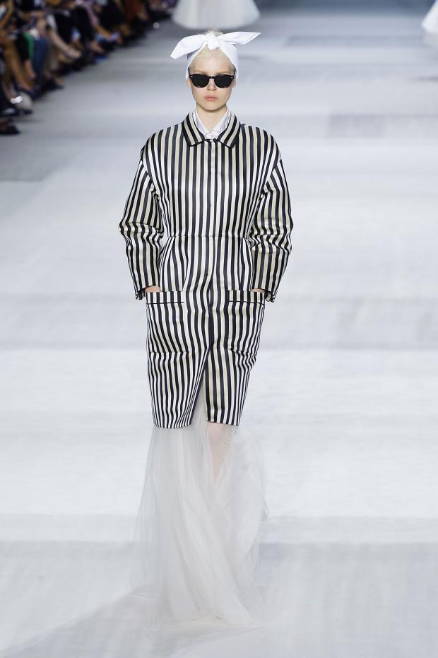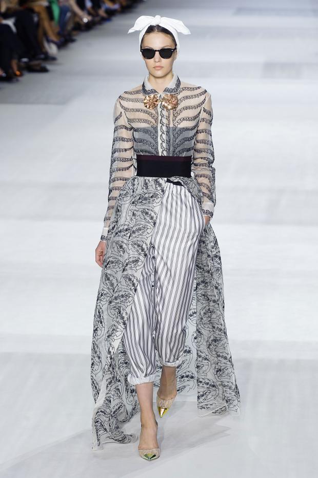 Styling sharpened the narrative. Dark sunglasses and head wraps added a cool detachment, reframing otherwise sweet pieces as something more knowing. This was where the “bad girl with a trust fund” energy came into focus. The clothes themselves were elegant and refined, but the styling suggested independence, confidence, and a refusal to play innocent.